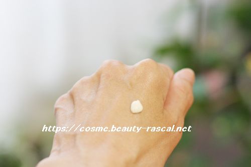 手に中身をとってみたところは、ホワイトのカラーで、なめらかなテクスチャーです。