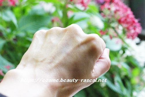 肌につけるとサ~ッと伸びていってくれて肌馴染みが良いです。肌に馴染ませるともちろん透明のカラーになります。