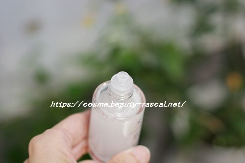中身は無色透明のカラーで、オイルよりも軽めのテクスチャーです。